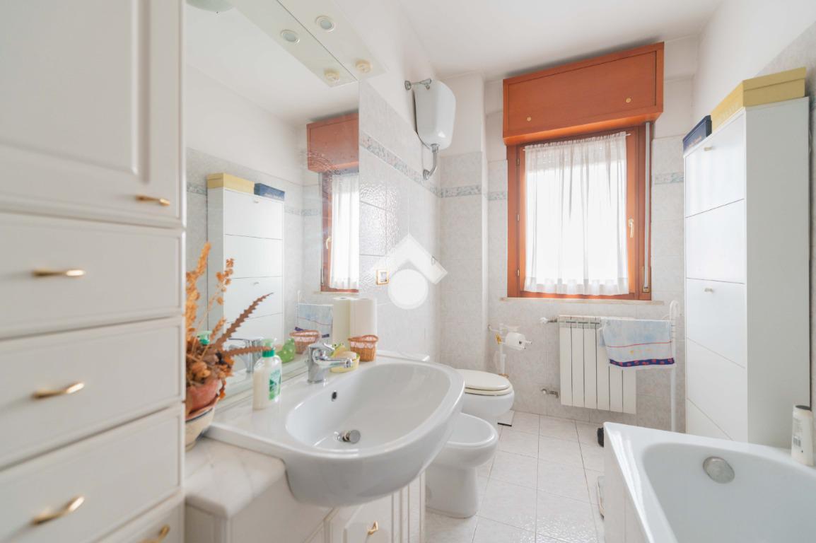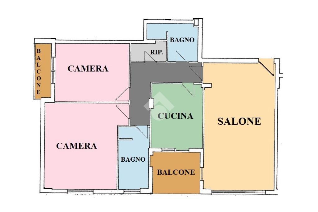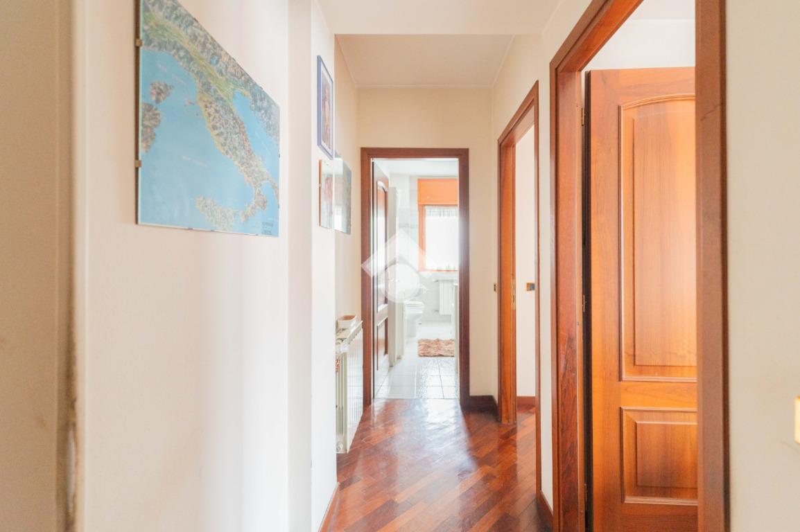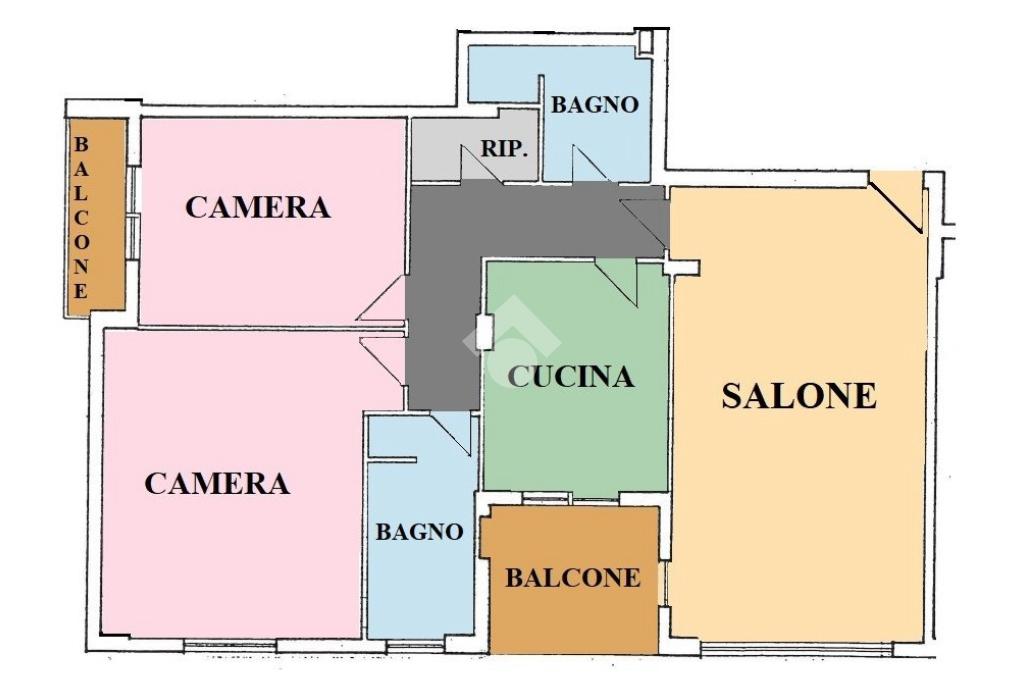 L'appartamento è un ampio 3 locali e si compone di: ingresso, soggiorno, cucina abitabile, 2 camere da letto, doppi servizi di cui uno finestrato con box doccia e vasca, ripostiglio e due balconi di cui uno abitabile accessibile dalla zona giorno e uno accessibile dalla zona notte.