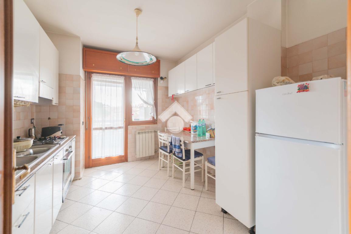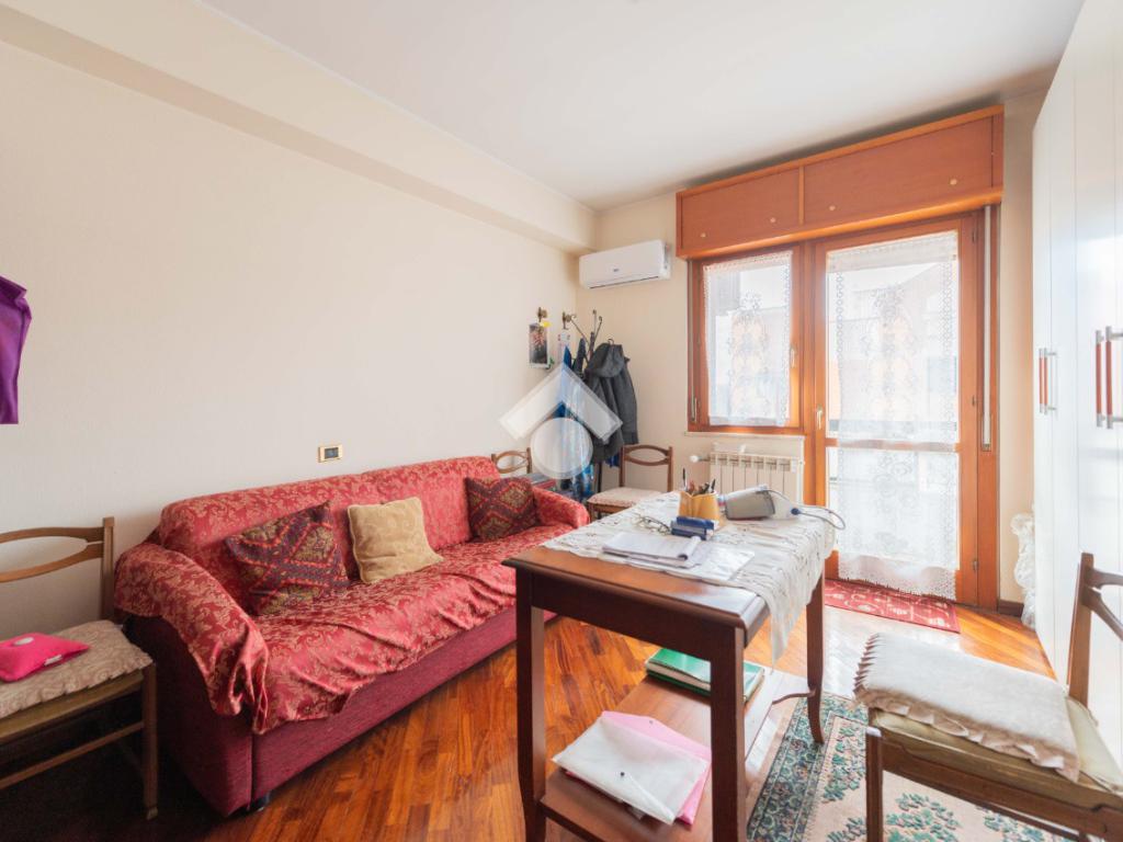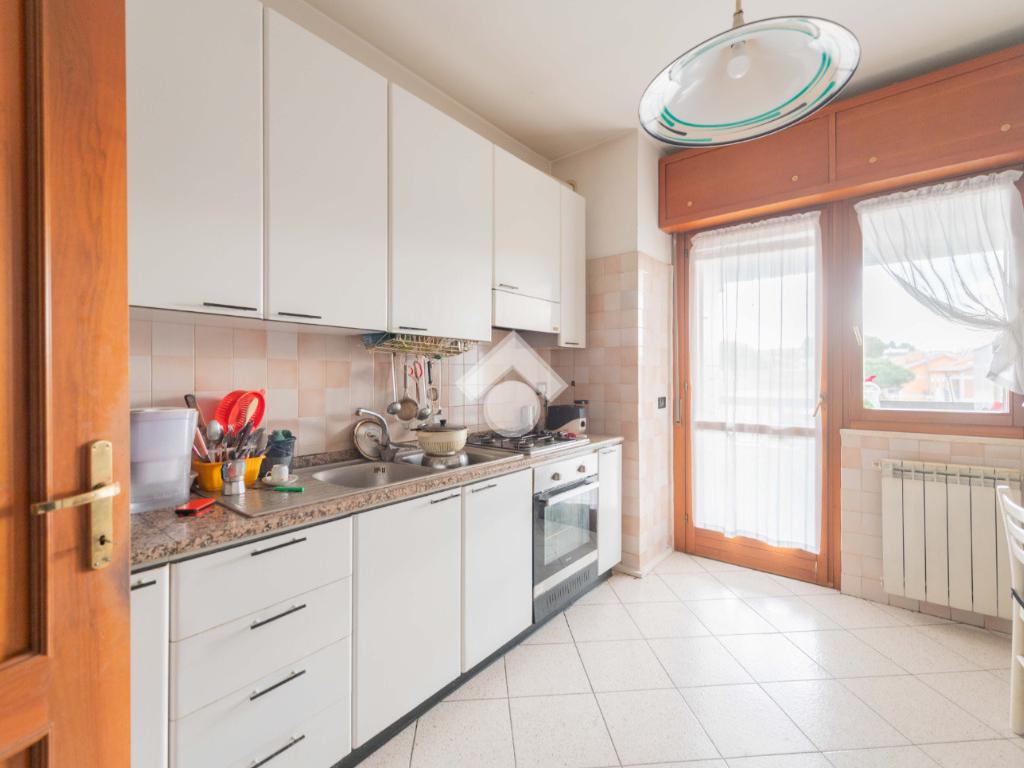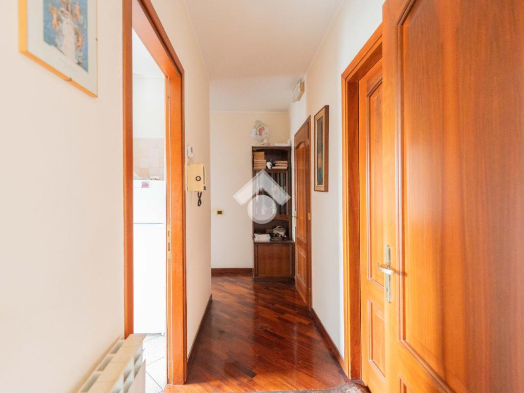 L'appartamento è un ampio 3 locali e si compone di: ingresso, soggiorno, cucina abitabile, 2 camere da letto, doppi servizi di cui uno finestrato con box doccia e vasca, ripostiglio e due balconi di cui uno abitabile accessibile dalla zona giorno e uno accessibile dalla zona notte.